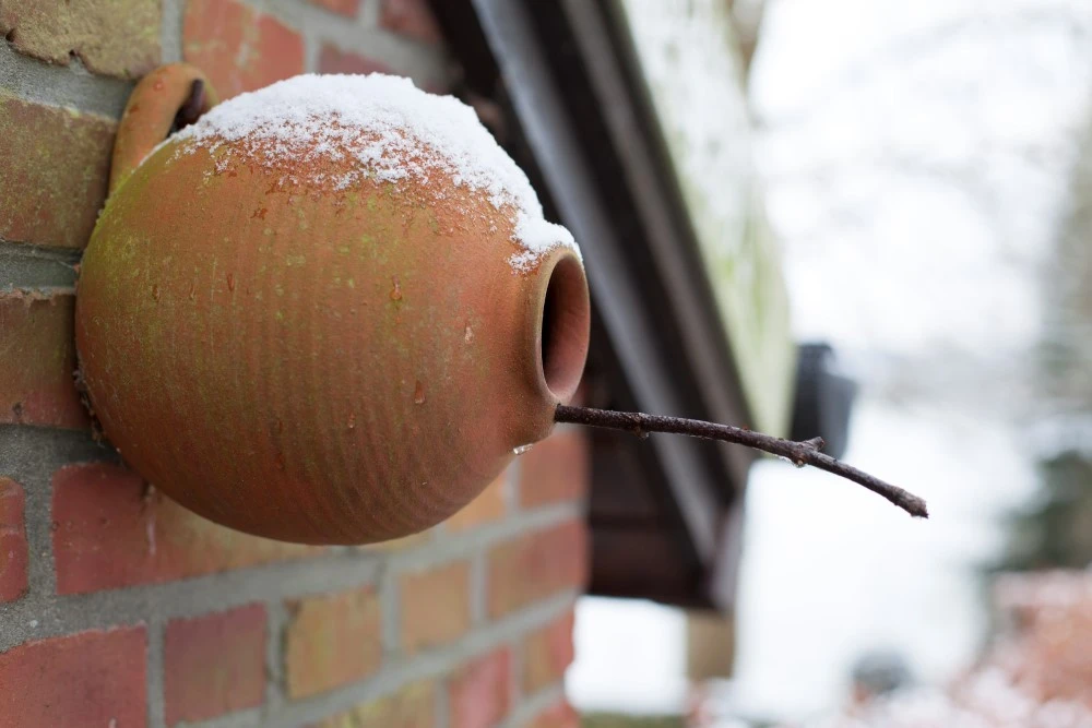 Al sinds de 16de eeuw worden vogelpotten gebruikt. Deze vogelpot is gebaseerd op een model uit de 17de eeuw. Net als tegenwoordig vonden mensen het toen al prettig om vogels om zich heen te hebben, en ze bezig te zien met hun jongen. Deze handvervaardigde pot heeft een authentieke uitstraling en is op traditionele en ambachtelijk wijze gemaakt. De grondvorm is een bolle vaas, die dankzij de platte open achterkant aan de muur opgehangen kan worden. Deze pot biedt Mezen en Mussen een goede plek om in te nesten en om populaties van deze vogelsoorten te behouden of weer terug te krijgen in een gebied. In de winter bewijst de vogelpot vaak een goede dienst voor de vogels om te schuilen tegen het slechte weer. Een juiste plaats om de vogelpot op te hangen is een rustige en enigszins beschutte plaats, dus niet pal in de zon of op de regenzijde, met een vrije aanvliegroute voor de vogel. Het najaar is de beste tijd om de pot schoon te maken.