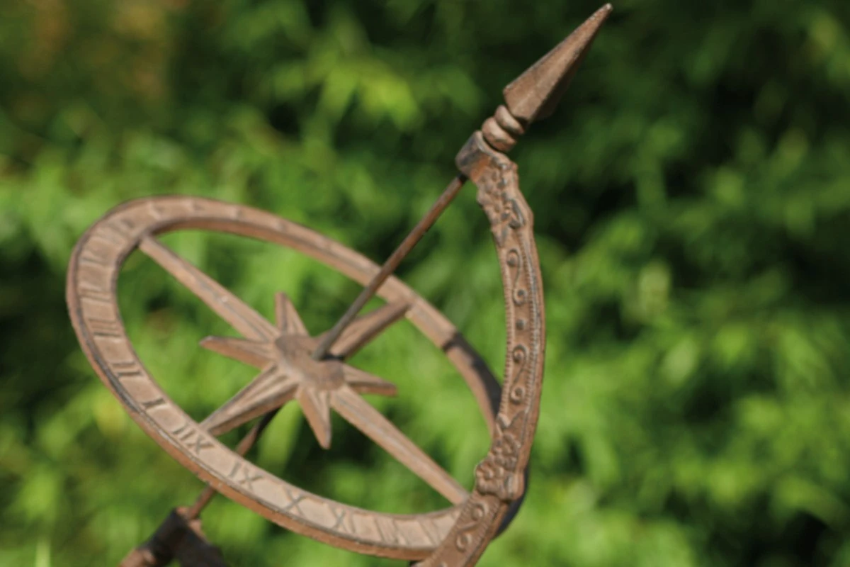 De Egyptenaren kunnen vanaf omstreeks 1500 voor Christus de tijd aflezen van de zon middels de zonnewijzer. Door de schaduw van de stijl op de ring geeft de zonnewijzer de tijd weer. Deze klassieke zonnewijzer moet met de 12 uurlijn naar het noord-zuid worden gericht om zo te kunnen werken. De schaal van het uurwerk in romeinse stijl  bevindt zich aan de bovenzijde van de ring en door de gekozen grootte van de cijfers is het tijdstip simpel en snel af te lezen. Bovendien is de zware voet voorzien van windroos. Deze decoratief gietijzeren zonnewijzer is met de hand gegoten volgens eeuwenoud vakmanschap en traditie.