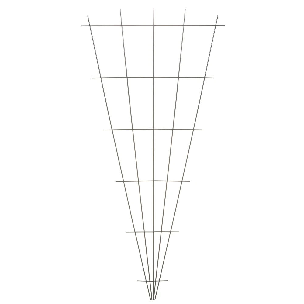 Decoratief V-vormig metalen klimplantrek van verzinkt staal of geplasticificeerd groen/grijs. U kunt deze klimrek bijvoorbeeld gebruiken naast een pergola, tegen een muur of onder een plantenbak.